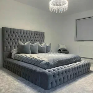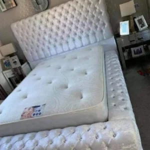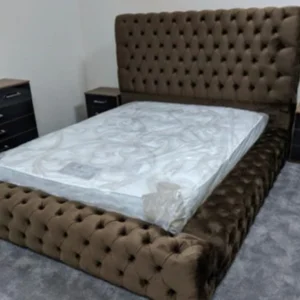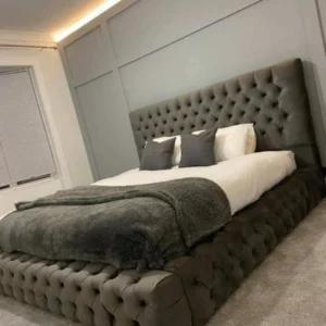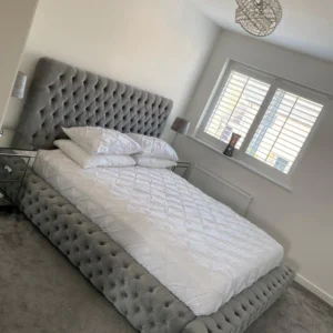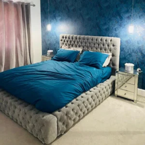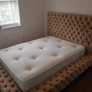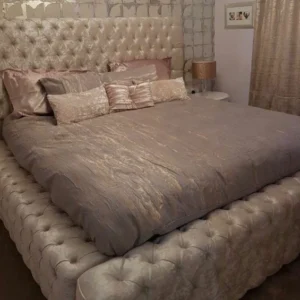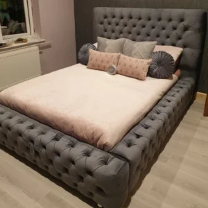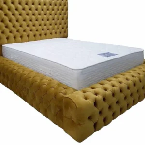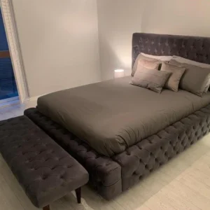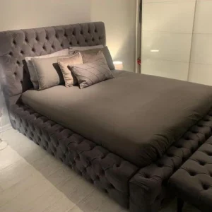 Our signature bed frame, upholstered in a classic chesterfield design engineered with a modern twist a real show piece for any bedroom.