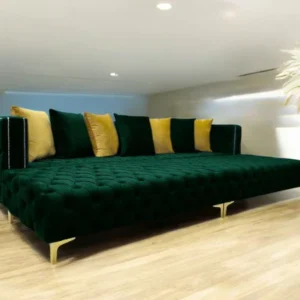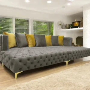 Transform your living room into a luxurious cinema experience with the Ashley Chesterfield Cinema Room Sofa. Its classic chesterfield design is enhanced by metal studs and metal legs, adding a touch of elegance. Relax in style and comfort while watching your favourite movies or TV shows.