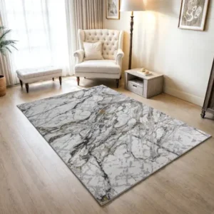 Enhance your home with the Bohemia Rug, showcasing a luxurious marble design in gold, cream, silver, and grey. This glamorous piece effortlessly combines modern elegance with a touch of sophistication. The rug’s plush 12 mil pile height offers exceptional softness and comfort underfoot. Crafted for durability, the Bohemia Rug is perfect for high-traffic areas as well as quiet, refined spaces. Bring a sense of opulence to your decor with the Bohemia Rug, where contemporary design meets glamorous allure.