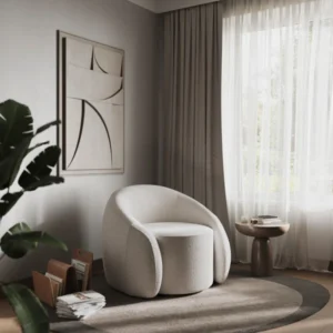 The Buxton Boucle Chair features a unique curved backrest and plush cushioning, providing excellent support and comfort. Its neutral color palette makes it the perfect addition to any living room or bedroom.