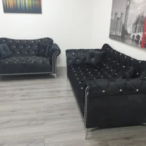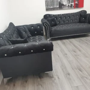 - Upholstered in matching fabric buttons this can be changed to diamanté buttons on request.