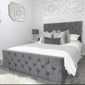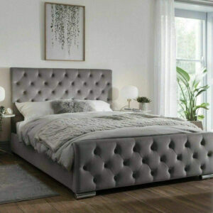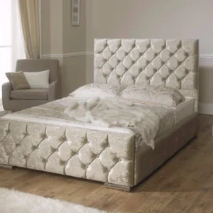 The Florida Chesterfield Bed is upholstered with the beautiful classic chesterfield design. This frame has a sprung slatted base with a natural bounce to adjust where pressure is most exerted, providing greater comfort. Handcrafted in the UK with the most luxurious fabric, this chesterfield bed will look amazing in any bedroom.