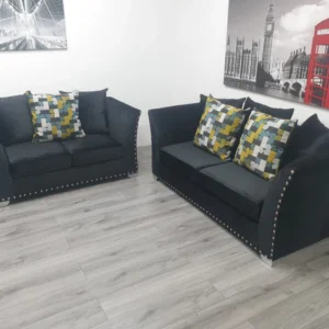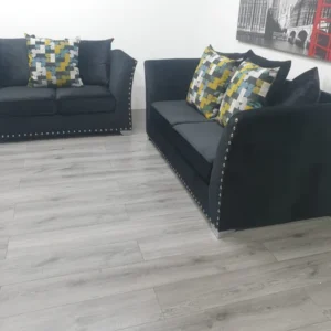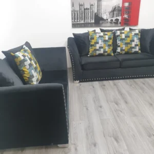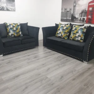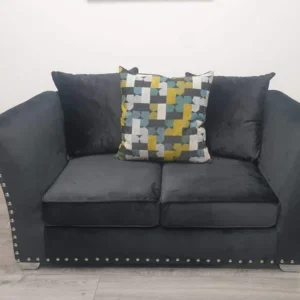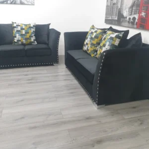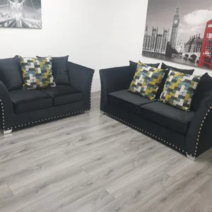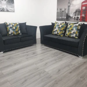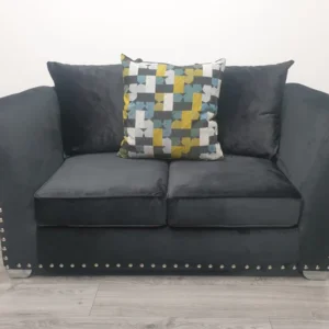 The Maya is a classic sofa design with flared arm rests comes with metallic stud beading on the front sides and bottom.