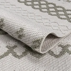 Presenting the Miya Rug: a stylish and durable addition to your home. Available exclusively in the size 200 cm x 290 cm, this rug showcases a unique flat and loop design, ensuring a contemporary look and long-lasting quality. The Miya Rug features a sophisticated blend of green, grey, and white hues, adding a fresh and elegant touch to any room. Whether for high-traffic areas or cozy corners, the Miya Rug combines beauty and resilience, making it an excellent choice for your living space.