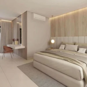Raphael extra wide headboard bed is A simple panel design that extends to the sides of the bed.