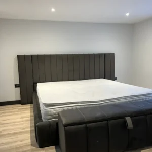 We can build the headboard of the Raphael extra wide headboard bed in one single piece (access allowing) Or For ease of access the headboard can come in three parts the side panels can also be removed if not required.