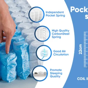 Each spring acts independently contouring to your body and absorbing movement during the night. The springs are zoned which means they provide extra support to areas like the hips, and back providing a restorative and refreshing nights sleep.