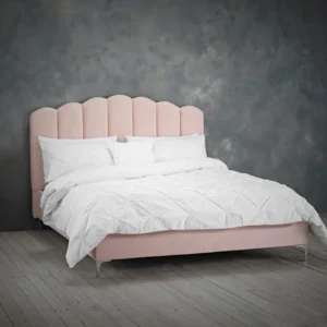 Introducing the new Willow bed to our collection of fabric beds. This deep fluted petal design bed is upholstered in a sumptuous velvet with a choice of 2 colours, shell pink or soft silver.
