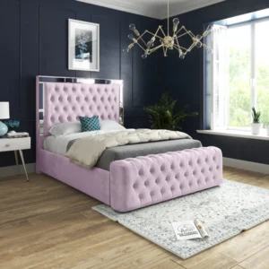 This luxurious bed frame incorporates our signature chesterfield design with a reflective panel border.