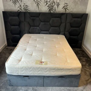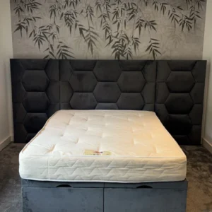 One of our Latest Hexagonal designs from our Premium range all featuring extra wide headboards this is the must have trend for all master bedrooms this season.
