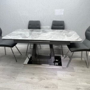 Upgrade your dining experience with the Zermatt Extendable Dining Table and 6 Zermatt Chairs.